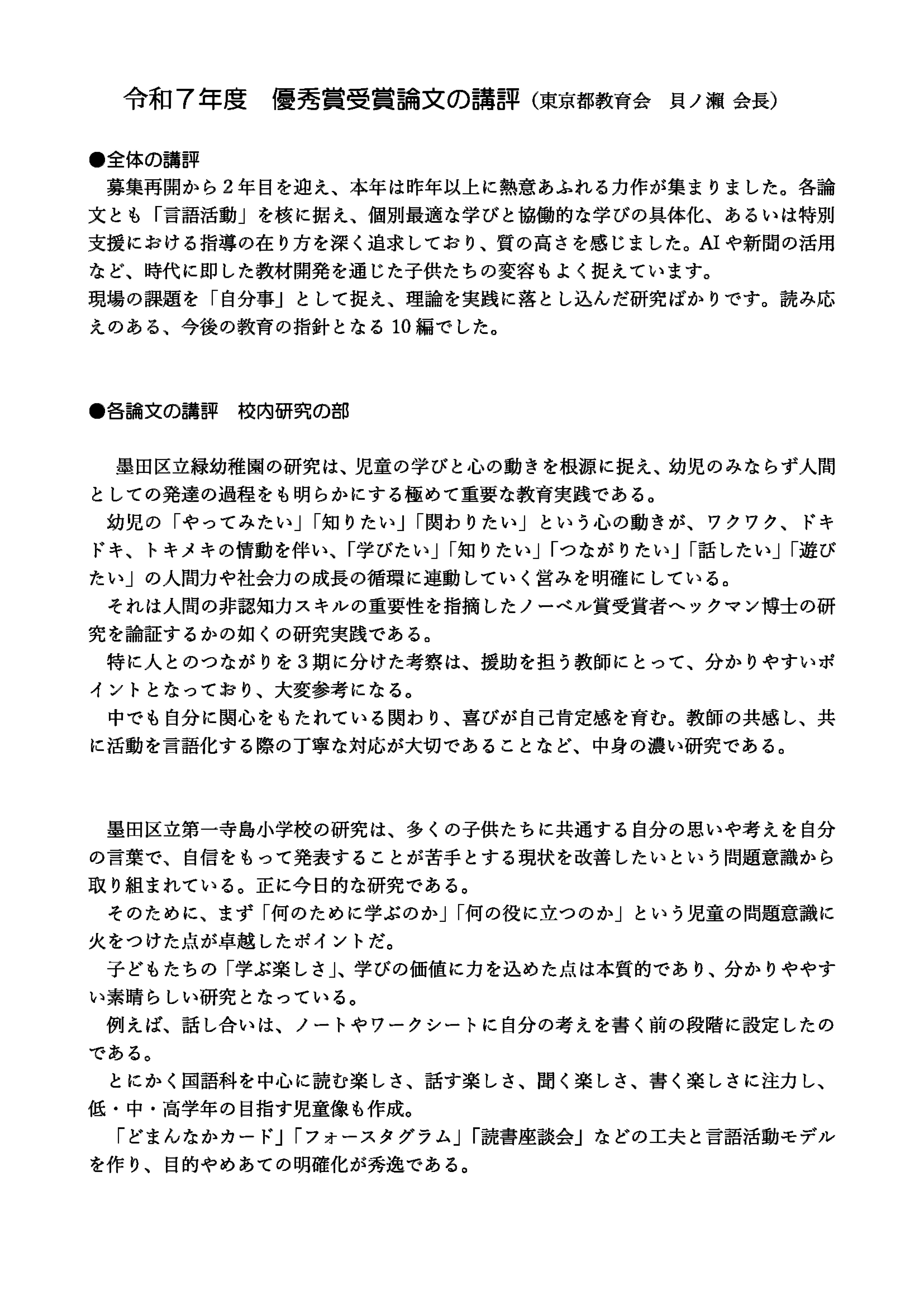 ● 令和7年度優秀賞受賞論文 講評 ●
